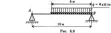 1. Замените распределенную нагрузку сосредоточенной и определите расстояние от точки приложения равнодействующей до опоры А (рис. 6.9).