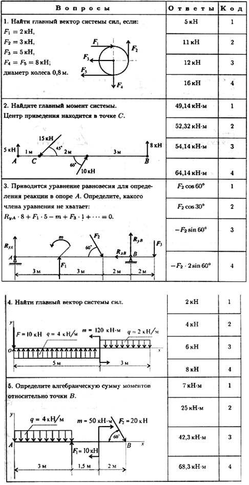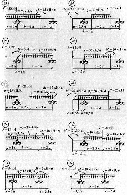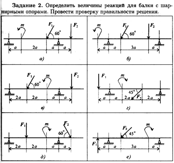 Определить опорные реакции балки на двух опорах по данным одного из вариантов, показанных на схемах. Проверить правильность их определения.