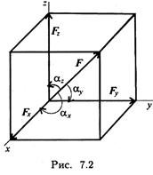 αх, αу, αz — углы между вектором F и осями координат. Пространственная сходящаяся система сил — система сил, не лежащих в одной плоскости, линии действия которых пересекаются в одной точке. Равнодействующую пространственной системы сил можно определить, построив пространственный многоугольник (рис. 7.3),