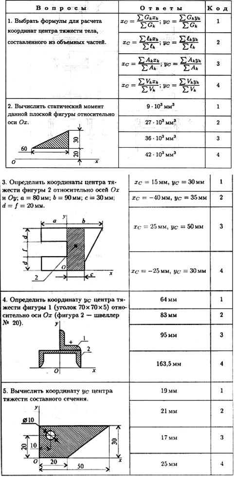 Тема 1.6. Статика. Центр тяжести тела Расчетно-графическая работа №4. Определение центра тяжести фигур. Задание 1. Определить координаты центра тяжести заданного сечения.