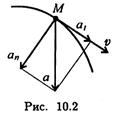 Полное ускорение равно касательному ускорению. Криволинейное равнопеременное движение (рис. 10.2):