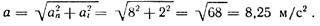 6. Определим значение полного ускорения точки через 5 с после начала равнозамедленного движения (см. положение К на рис. 5)