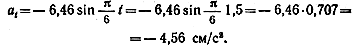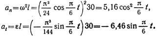 Касательное ускорение шарика обращается в ноль в тот момент, когда стержень OA совпадает с линией OC. Вычислим аn и at при t = 1,5 с: