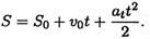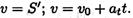 Здесь So — путь, пройденный до начала отсчета, м; v0 — начальная скорость движения, м/с; at — постоянное касательное ускорение, м/с2 Скорость: