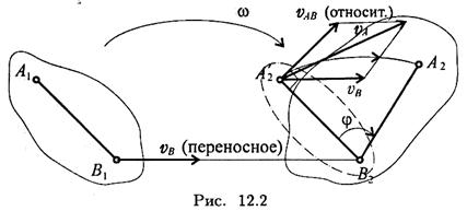 Разложение используют для определения скорости любой точки тела, применяя теорему о сложении скоростей (рис. 12.2).