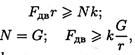 где k — максимальное значение плеча (половина колеи) принимается за коэффициент трения качения, размерность — сантиметры. Ориентировочные значения k (определяются экспериментально): сталь по стали — k — 0,005 см; резиновая шина по шоссе — k = 0,24 см.
