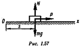 Тело движется по прямой. Следовательно, и сила, действующая на точку, направлена по этой же прямой. Силы, действующие на тело, показаны на рис. 1.57 (т g — сила тяжести тела, N — реакция поверхности, Р — искомая сила). Очевидно, что
