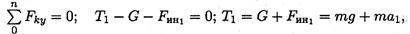 где Т — натяжение каната; G — сила тяжести; FИH — сила инерции, растягивающая канат. Для определения ускорения на участке 1 учтем, что движение на этом участке равнопеременное, скорость v = vo + at; v0 = 0. Следовательно, ускорение: