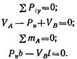 Сила инерции направлена вниз, так как ускорение груза направлено вверх. Освобождаем балку от связей и заменяем их действие реакциями V А и V в. Составляем уравнения равновесия: