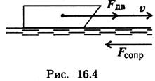 Пример 2. Судно движется со скоростью 56 км/ч (рис. 16.4). Двигатель развивает мощность 1200 кВт. Определить силу сопротивления воды движению судна. КПД машины 0,4.