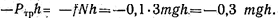Вычислим работу сил, приложенных к системе. Работа силы тяжести груза В равна Рh = тgh, работы сил N и 3 Р равны нулю (силы перпендикулярны перемещению точки их приложения), работа силы трения равна Сила натяжения нити является внутренней силой, поэтому ее работа равна нулю. Таким образом, уравнение кинетической энергии системы в данном случае имеет вид