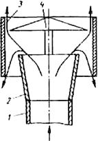 Рис. 1.7. Принципиальная схема дефлектора ЦАГИ: 1—патрубок; 2—диффузор; 3— кольцо; 4—зонт