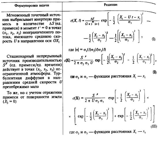 * А, В, С — атмосфера соответственно сильно, умеренно, слегка неустойчива; D — нейтралыная; Е, F— слегка и умеренно устойчивая. ** Сильная инсоляция соответствует высоте Солнца j ³ 60° над горизонтом при ясном небе; слабая инсоляция, если 15° < j < 35°. *** Облачность определяется как часть неба над местным видимым горизонтом, покрытом облаками **** Нейтральная категория D соответствует также случаю сплошной облачности днем.