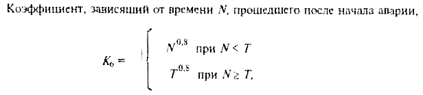 где К8 —коэффициент, зависящий от степени вертикальной устойчивости воздуха; при инверсии К8 = 0,081; при изотермии 0,133, при конверсии —0,235. Время подхода облака СДЯВ к заданному объему зависит от скорости переноса облака воздушным потоком