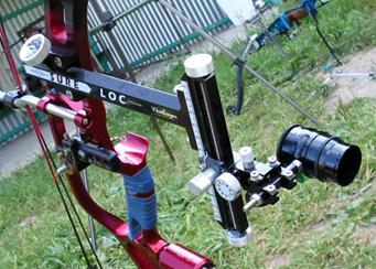 Прицельные приспособления блочного лука состоят из собственно прицела и пип-сайта. Прицел крепится в средней части рукояти на ее правой плоскости или, реже, на переднем ребре.