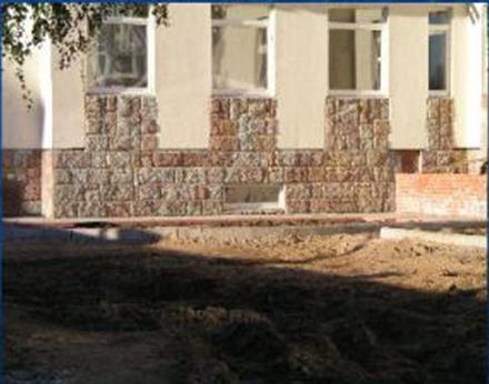 Цокольные плиты, камни для обрамления порталов, пояски, угловые плиты, подоконные плиты, плинтусы и др. – их изготавливают механизированным способом из пиленых плит, выполняя одну или две боковые грани плоскими или профильными. Для наружной облицовки фасада зданий применяют элементы из твердых камней. Для внутренней облицовки – из мрамора.