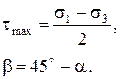 Тогда величина и направление главных напряжений определяются выражениями: