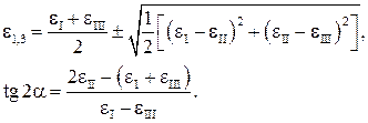 5. Определяют средние значения приращений деформаций De, соответствующие приращениям D Р = 100 Н, D М х = 25 Нм и D Т =20 Нм. 6. Определяют по формулам (3) – (5) величину и направление главных напряжений, деформаций и максимальных касательных напряжений (принять для алюминия Е = 0,7×105 МПа, m = 0,33). 7. Сравнить величины нормальных и касательных напряжений, полученные экспериментально и теоретически по формулам (1) и (2). Результаты всех расчетов оформляют в виде таблицы.