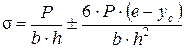 С учетом прогиба максимальные и минимальные напряжения в среднем сечении бруса вычисляют по формуле