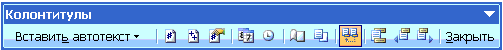 Формирование оглавления документа. Колонтитулы, как и фон документа, а также поля, размер и ориентация страниц, номера страниц, разрывы страниц и разделов относятся к изменению внешнего видаКолонтитулы Колонтитулы, как и фон документа, а также поля, размер и ориентация страниц, номера страниц, разрывы страниц и разделов относятся к изменению внешнего вида страниц и документа. Колонтитул — это текст или рисунок (номер страницы, дата печати документа, логотип организации, название документа, имя файла, фамилия автора и т. п.), который печатается внизу или вверху каждой страницы документа. В зависимости от места расположения (на верхнем или на нижнем поле страницы) колонтитулы бывают верхними и нижними. Как правило, колонтитулы используются в печатных документах. Создание колонтитула · Выберите команду Колонтитулы в меню Вид · Для создания верхнего колонтитула введите текст или рисунок в область верхнего колонтитула или нажмите кнопку на панели инструментов Колонтитулы.