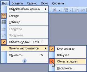 КЗ№10. (интерактивный контроль) Включите панель «Область задач», используя команды строки меню. Подсказка: