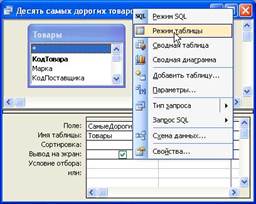 КЗ№13. (интерактивный контроль) Откройте схему базы данных Борей. Подсказка: Выполнить операции: Меню Сервис(ЛКМ)ÞСхема данных(ЛКМ) или нажать кнопку (Схема данных открыта. Предоставлена возможность вызова окна «Изменение связей» для каждой связи) В отношении между какими таблицами обеспечивается каскадное обновление связанных полей? В схеме данных выполнить щелчок (ЛКМ) сначала на заголовке главной таблицы (на стороне «один»), затем на заголовке внешней таблицы (на стороне «многие»). Подсказка: через контекстное меню отношений вызвать окно «Изменение связей», убедиться в установке флажка «Каскадное обновление связанных полей». Правильный ответ: КлиентыÞЗаказы. КЗ№14. (интерактивный контроль) Откройте запрос «Десять самых дорогих товаров» сначала в режиме конструктора, а затем перейдите в режим таблицы. Подсказка: 1) 2) Через контекстное меню