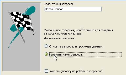 КЗ№36. (интерактивный контроль) На последнем шаге мастера создания простого запроса выбрать режим дальнейшего изменения макета запроса. Подсказка: установить переключатель в этот режим.