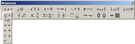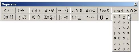 Таким образом, как видно из таблицы, перемещение курсора от одного поля шаблона к другому производится с помощью клавиши Tab. Вставка специальных символов в формулу также может производится с помощью палитры инструментов и сочетаний клавиш. Специальные символы целесообразно вводить при помощи палитры инструментов, т.к. они не так часто используются, а также в силу того, что сочетания клавиш для их вызова работают не на всех платформах (некоторые сочетания клавиш не работают под Windows NT). Поэтому сочетания клавиш для вызова специальных символов рассматривать не будем.