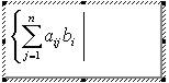 4. Наберите «a». 5. Нажмите Ctrl+L для ввода шаблона нижнего индекса. 6. Наберите «ij» и нажмите Tab для выхода из шаблона нижнего индекса. 7. Наберите «х» и нажмите Ctrl+L для вставки шаблона нижнего индекса. 8. Наберите «j» и нажмите Tab для выхода из шаблона нижнего индекса. 9. Еще раз нажмите Tab для переходу к следующему полю ввода – надписи над знаком «Сумма».