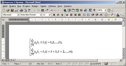 18. Нажмите Esc для выхода из редактора формул и вставки формулы в текст. Результат представлен на рисунке.