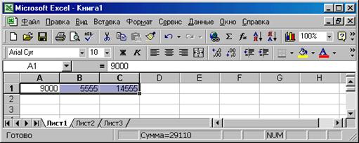 При этом в строке статуса (самая нижняя строка) автоматически рассчитывается сумма значений выделенных ячеек.