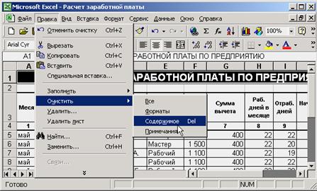 Для удаления информации в ячейках необходимо выделить группу ячеек и нажать Delete.