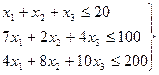 где первое неравенство – ограничение по ресурсу1, второе – по ресурсу2, третье – по ресурсу3. Правая часть неравенств отражает ограничение по использованию данного ресурса для производства. Целевая функция выглядит следующим образом: