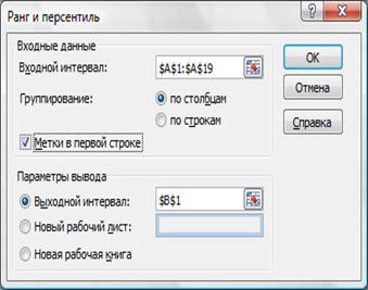 Рисунок 4.3. Средство анализа данных Ранг и перцентиль