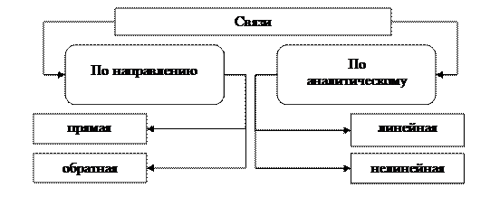 По направлению выделяют связь прямую и обратную (положительную и отрицательную), по аналитическому выражению - линейную и нелинейную (рис.5.2).