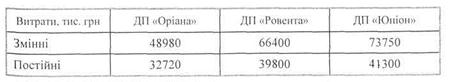Ураховуючи результати маркетингового дослідження, оцініть еластичність попиту за ціною на товар марки «Промінь» (при розрахунку еластичності враховуйте лише граничні дані пробного продажу). Зробіть висновки. Які ще фактори, крім ціни, можуть впливати на зміну обсягу продажу? 15. АТ «Надія» планує отримати цільовий прибуток у розмірі 250 тис. грн. Досвід роботи на даному ринку та аналіз діяльності за попередні роки дали можливість менеджерові товариства встановити оптимальну ціну на товар 1,8 грн/од. Річні постійні витрати на виробництво і збут товару становлять 273 тис. грн., а змінні витрати - 0,57 грн/од. Розрахуйте точку беззбитковості для даного товару та обсяг продажу, при якому товариство зможе отримати цільовий прибуток у запланованому обсязі. При розрахунках вважайте річні постійні витрати незалежними від обсягів продажу. 16. Поточний обсяг реалізації продукції підприємства з урахуванням кон'юнктури ринку може дорівнювати 15 тис. шт. Продажна ціна одиниці продукції становить 30 грн. Змінні витрати в розрахунку на одиницю продукції складають 12 грн., а постійні витрати на весь річний випуск продукції - 80 тис. грн. Розрахуйте: 1) точку беззбитковості виробництва, використавши аналітичний і графічний методи розрахунків; 2) додатковий розмір прибутку, який одержить підприємство за умови скорочення змінних витрат на 10% і постійних витрат на 20 тис. грн. 17. Парфумерна фірма закупила і ввела в дію нове обладнання для виробництва рідкого крему для рук, інвестувавши в це 410 тис. грн. Продуктивність нового обладнання - 120 тис. флаконів крему на рік. Змінні витрати (V) на одиницю продукції становлять 1,35 грн., постійні витрати (Р) на виробництво і збут товару - 69 600 грн. на рік. Використовуючи метод надбавок, визначте ціну нового крему, якщо фірма хоче отримувати 22 % прибутку від ціни продажу товару. Перевірте, чи буде виконана при цьому додаткова умова, висунута керівництвом фірми отримувати щорічно не менше 15 % прибутку на інвестований капітал. 18. За останні місяці виникло значне скорочення обсягів збуту електроприладів для випікання млинців до кави. їх продавали за ціною (Ц1) 25 грн. Еластичність попиту від ціни Е = -2,7 %. Чи порадили б Ви знизити ціну на 3 гривні за одиницю товару, якщо до цього часу щомісячно продавалося в середньому N 1 = 670 штук, змінні витрати на виробництво та продаж складали V = 17 грн/од., а постійні витрати на місяць - F - 1275 грн/міс. Необхідно, щоб балансовий прибуток був не менше 18 % від обсягів продажу. На державних підприємствах «Оріана», «Ровента» та «Юніон» склалися несприятливі ринкові умови господарювання. У зв'язку з цим виникла необхідність визначення мінімального (критичного) обсягу реалізації продукції на основі структури валових витрат на її виробництво (собівартості). Величини змінних і постійних поточних витрат на цих підприємствах у розрахунковому році наведено в таблиці. Через два роки економічна ситуація на них має поліпшитися, і для забезпечення нормальної їх діяльності потрібно одержувати на початку очікуваного періоду прибуток, що дорівнює 10% собівартості продукції.
