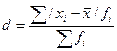 Если данные наблюдения представлены в виде дискретного ряда распределения с частотами, среднее линейное отклонение исчисляется по формуле средней арифметической взвешенной: