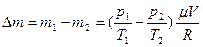 Из уравнений (1) и (2) выразим m1 и m2 и найдём их разность: