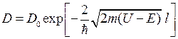 где D0 – множитель, который можно приравнять к единице; U – высота потенциального барьера; Е – энергия частицы.