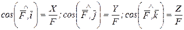 Проекции силы на оси прямоугольных координат определяются по формулам: