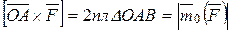 где Таким образом, вектор-момент силы относительно точки равен векторному произведению радиуса-вектора точки приложения силы на вектор силы. Обозначая алгебраическое значение момента силы относительно точки О через
