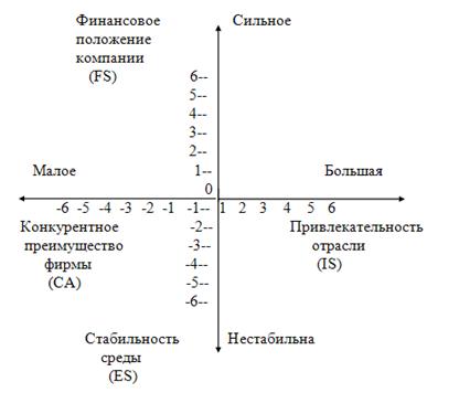 Отрасли. В основе методики SPACE (Strategic Position and Aсtion Evaluation – стратегическая оценка положений и действий) лежит анализ положения фирмы и условий ее