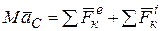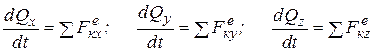 Уравнение (4.3) выражает теорему об изменении количества движения механической системы в дифференциальной форме: производная по времени от количества движения механической системы геометрически равна главному вектору внешних сил, действующих на эту систему. Векторному уравнению (4.3) соответствуют три уравнения в проекциях на оси координат