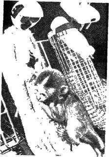 Рис. 5. Запечатлевание как ранний механизм ослабления беспокойства. Демонстрация предпочтения тепла и тактильного комфорта при контакте с тряпичной «мамой» у детеныша макаки-резуса несмотря на то, что кормит его проволочная «мама». (Иэки ПонугаеваА Г Импринтииг Л, 1972)