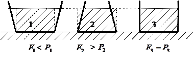 Закон Паскаля: давление, производимое на жидкость или газ, передается без изменения в любую точку объема жидкости или газа. Объясняется закон Паскаля подвижностью молекул жидкости или газа. В отличие от жидкостей и газов твердые тела передают давление в одном направлении – направлении действия силы. На одном и том же уровне давление в жидкости и газе одинаково по всем направлениям. С увеличением глубины давление увеличивается. В неподвижной жидкости давление на некоторой глубине Гидростатический парадокс: вес жидкости, налитой в сосуд, может отличаться от силы давления, оказываемой ею на дно сосуда. В расширяющихся кверху сосудах сила давления