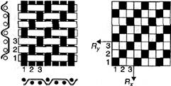 Рис. 2.6. Саржа основная Рис. 2.8. Атлас 8/3
