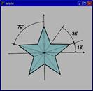 Окружность и эллипсEnd. Begin Else End Begin Implementation Var Public Private Type Uses Листинг 4. Вычерчивание замкнутого контура (звезды) в точке нажатия кнопки мыши Var Листинг. График функции (использование метода Polyline) procedure TForml.Button1Click(Sender: TObject); gr: array[1..50] of TPoint; // график — ломаная линия x0,y0: integer; // координаты точки начала координат dx,dy: integer; // шаг координатной сетки по осям X и Y i: integer; begin х0:= 10; у0:= 200; dx := 5; dy:= 5; // заполним массив gr for i:=l to 50 do begin gr[i].x:= x0 + (i-l)*dx; gr[i].y:= y0 - Data[i]*dy; end; // строим график with forml.Canvas do begin MoveTo(x0,y0); LineTo(x0,10); // ось Y MoveTo(x0,y0); LineTo(200,y0); // ось X Polyline(gr); // график end; end; Метод Polyline можно использовать для вычерчивания замкнутых контуров. Для этого надо, чтобы первый и последний элементы массива содержали координаты одной и той же точки. В качестве примера использования метода Polybine для вычерчивания замкнутого контура в листинге 4 приведена программа, которая на поверхности диалогового окна, в точке нажатия кнопки мыши, вычерчивает контур пятиконечной звезды. Цвет, которым вычерчивается звезда, зависит от того, какая из кнопок мыши была нажата. Процедура обработки нажатия кнопки мыши (событие MouseDown) вызывает процедуру рисования звезды starLine и передает ей в качестве параметра координаты точки, в которой была нажата кнопка. Звезду вычерчивает процедура starLine, которая в качестве параметров получает координаты центра звезды и холст, на котором звезда должна быть выведена. Сначала вычисляются координаты концов и впадин звезды, которые записываются в массив р. Затем этот массив передается в качестве параметра методу Polyline. При вычислении координат лучей и впадин звезды используются функции sin и cos. Так как аргумент этих функций должен быть выражен в радианах, то значение угла в градусах домножается на величину pi/18о, где pi — это стандартная именованная константа равная числу л. unit Stars_; interface Windows, Messages, SysUtils, Variants, Classes, Graphics, Controls, Forms, Dialogs, StdCtrls; TForm1 = class (TForm) procedure FormMouseDown(Sender: TObject; Button: TMouseButton; Shift: TShiftState; X, Y: Integer); { Private declarations } { Public declarations } end; Forml: TForml; f$R *.dfm} // вычерчивает звезду procedure StarLine(x0,y0,r: integer; Canvas: TCanvas); // x0,y0 — координаты центра звезды //r — радиус заезды var р: array [1.. 11] of TPoint; // массив координат лучей и впадин a: integer; // угол между осью ОХ и прямой, соединяющей // центр звезды и конец луча или впадину i: integer; а:= 18; // строим от правого гор. луча for i:=l to 10 do begin if (i mod 2=0) then begin // впадина p[i].x:= x0+Round(r/2*cos(a*pi/180)); p[i].y:=y0-Round(r/2*sin(a*pi/180)); begin // луч [i].x:=x0+Round(r*cos (a*pi/180)); [i].y:=y0-Round(r*sin(a*pi/180)); end; a:= a+36; end; p[ll].X:= p[l].X; // чтобы замкнуть контур звезды Canvas. Polyline (р); // начертить звезду end; // нажатие кнопки мыши procedure TForm1. FormMouseDown { Sender: TObject; Button: TMouseButton; Shift: TShiftState; X, Y: Integer); if Button = mbLeft // нажата левая кнопка? then Form1. Canvas. Pen. Color: = clRed else Form1. Canvas. Pen. Color:= clGreen; StarLine(x, y, 30, Forml. Canvas); end;