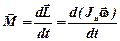 где М – момент внешних сил, приложенных к телу, L – момент импульса тела, J – момент инерции тела, w – его угловая скорость. Если J = const, то