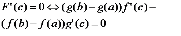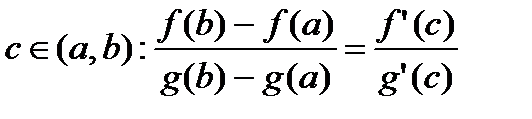 Если f(x), g(x) удовл. трем условиям: 1). f(x), g(x) непрерыв. на промеж [a,b] 2). f(x), g(x) деффер. на интервале (a,b) 3). g’(x)¹0 на интер. (a,b), то сущ. т. с