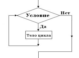 Рисунок 4. Цикл с постусловием Тело цикла выполняется циклически до тех пор, пока условие истинно в первом случае и ложно - во втором. Группирование означает объединение одной или нескольких инструкций внутри специальной инструкции. Во всех языках имеются средства для формирования единого блока из группы инструкций (подпрограммы в Бейсике, составные инструкции и процедуры в Паскале). Примером группирования может являться также выполнение в конструкциях циклов следования или выбора и т.д.